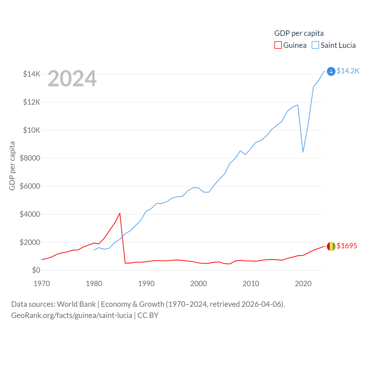 Guinea and Saint Lucia economies compared
