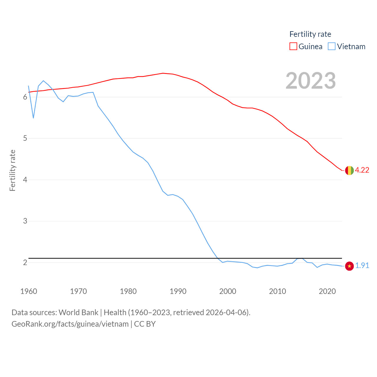 - World Bank | Health (1960–2025, retrieved 2026-04-06)