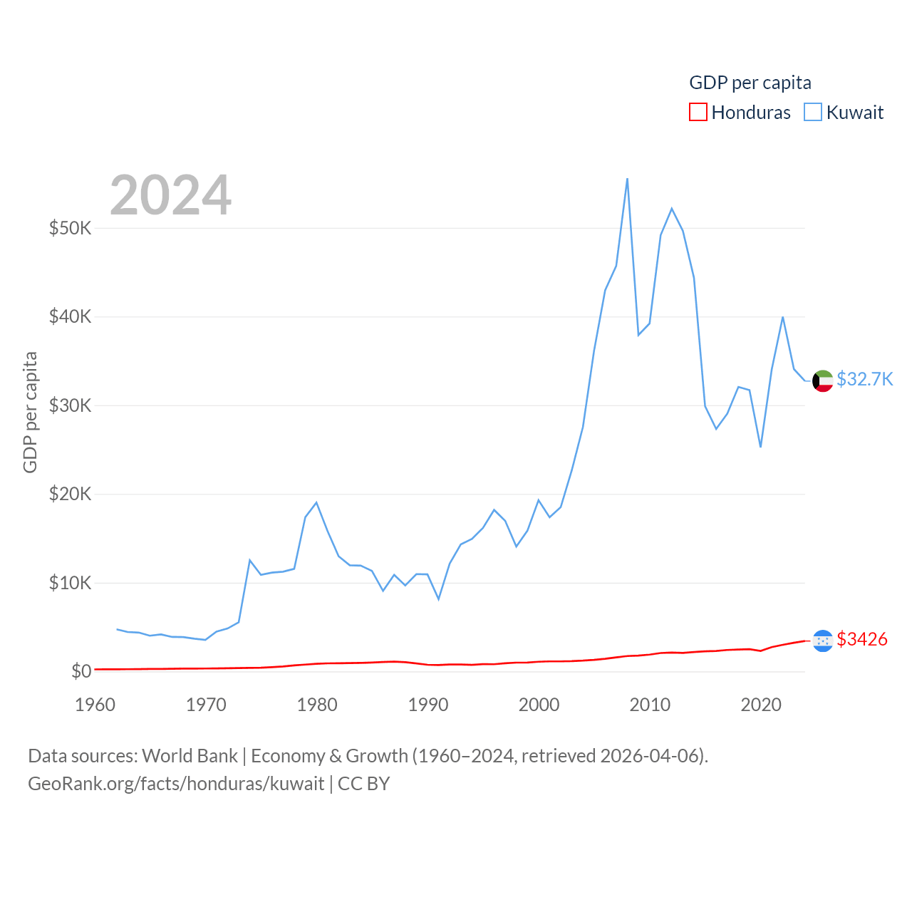 Honduras and Kuwait economies compared