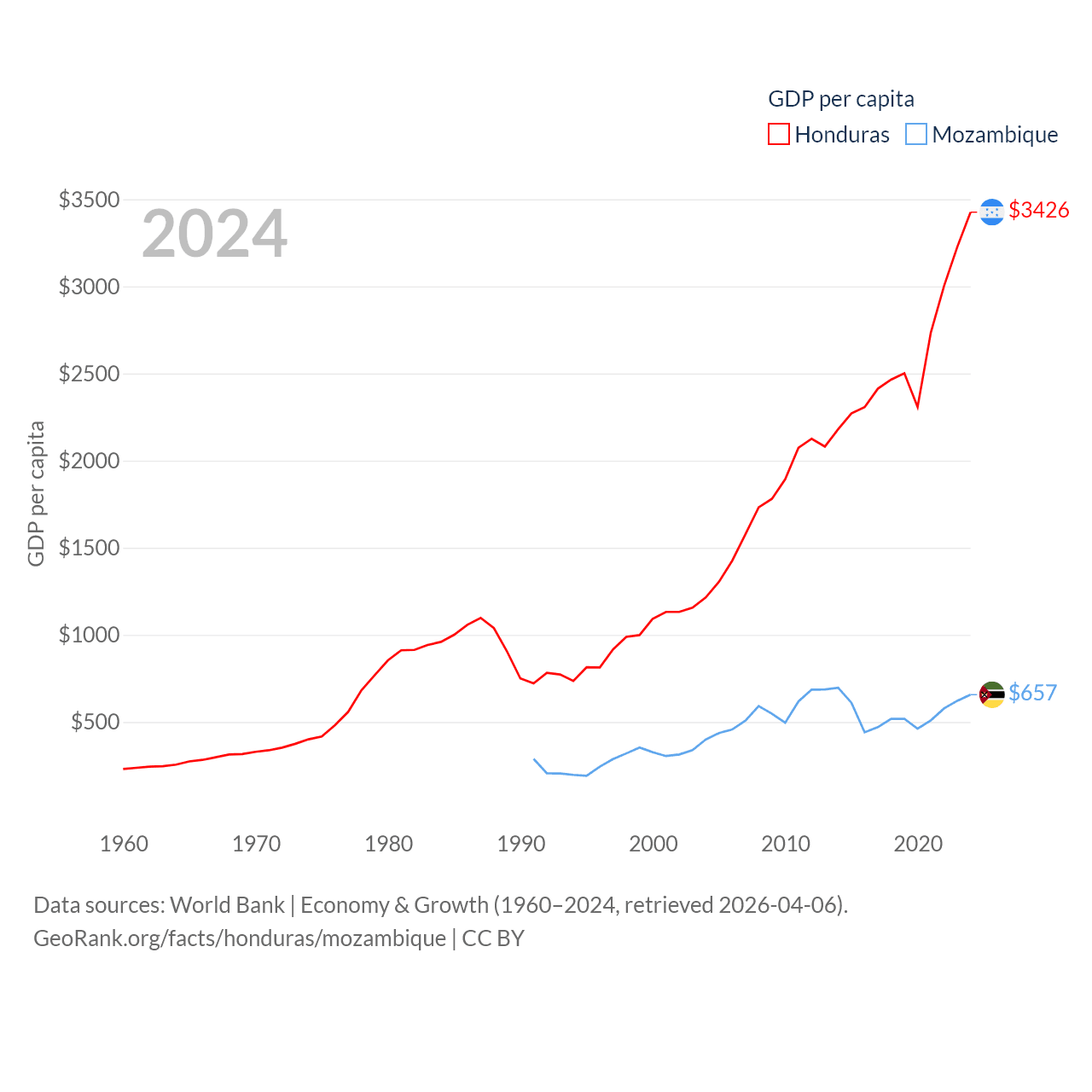 Honduras and Mozambique economies compared