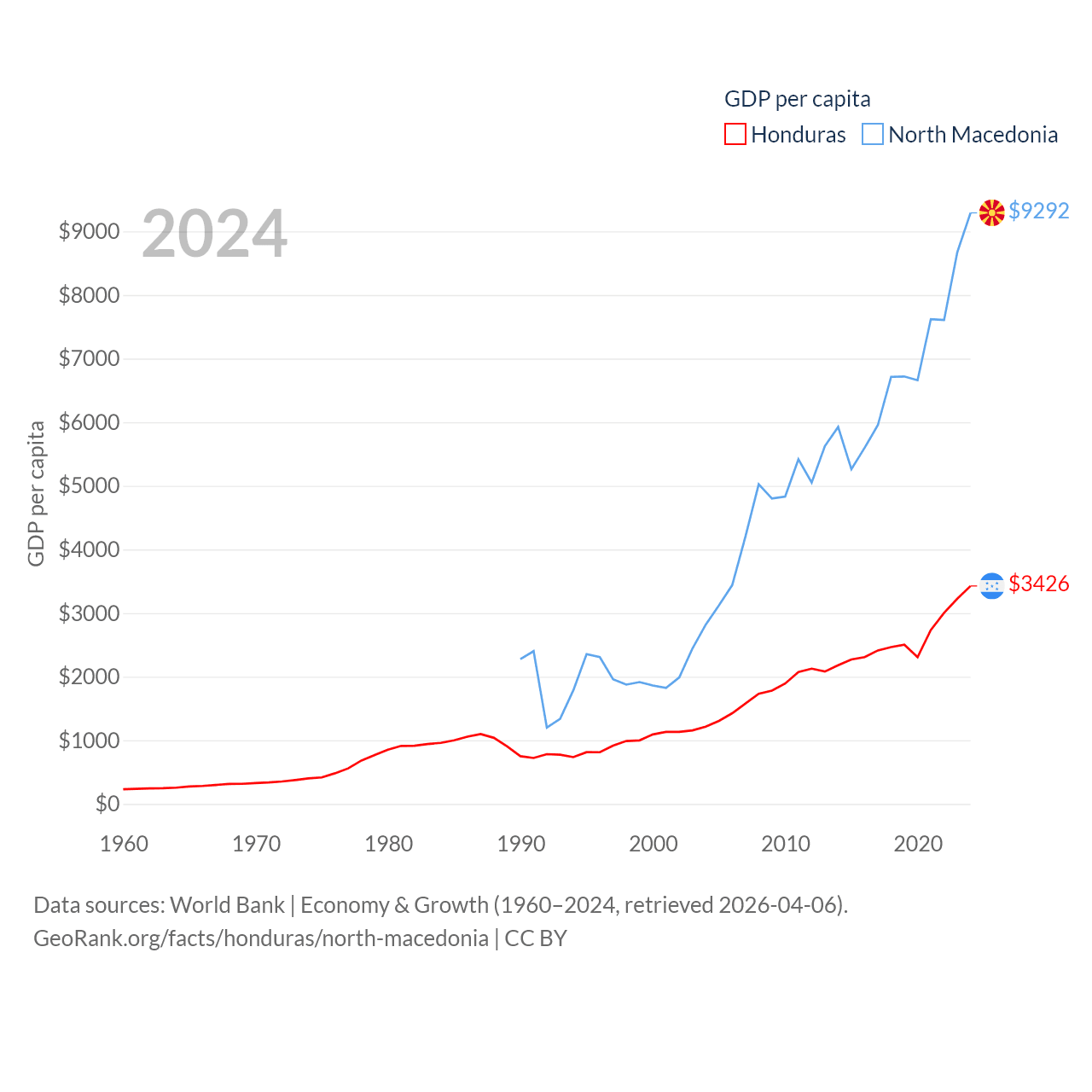 Honduras and North Macedonia economies compared