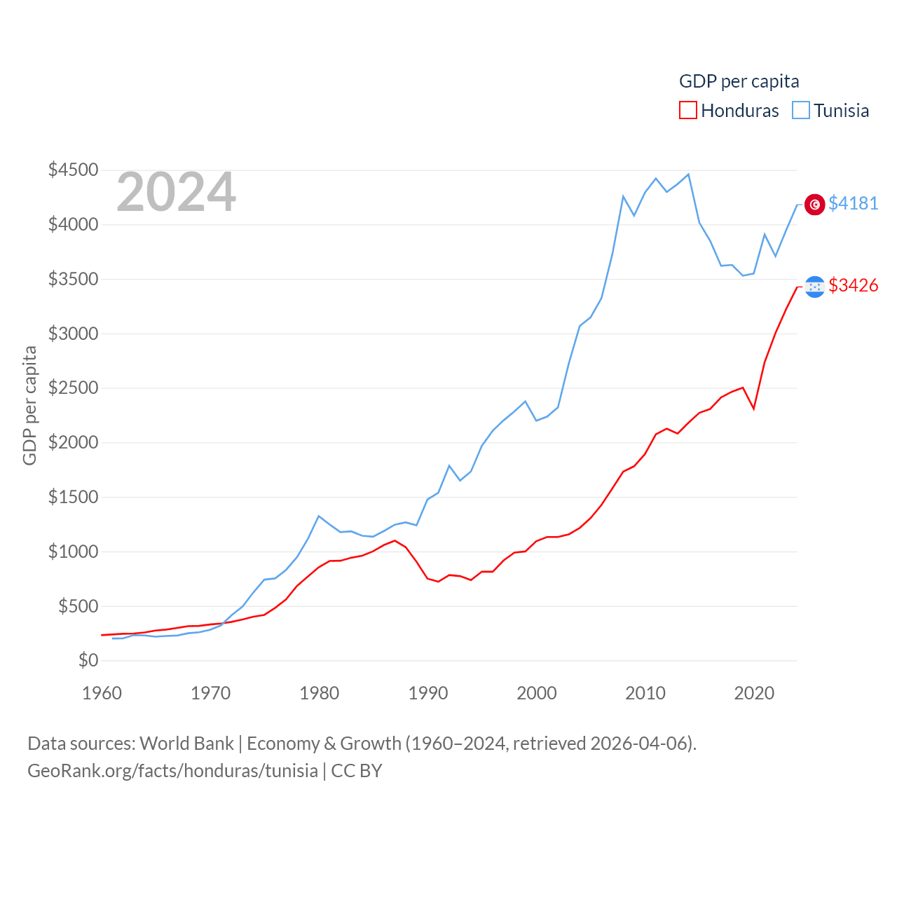 Honduras and Tunisia economies compared