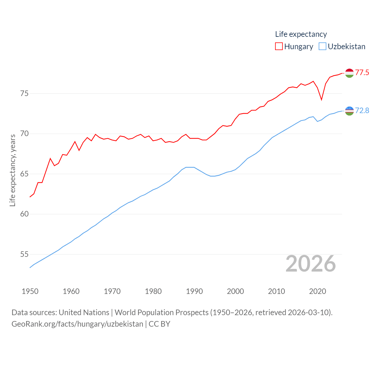 - United Nations | World Population Prospects (1950–2026, retrieved 2026-03-10)