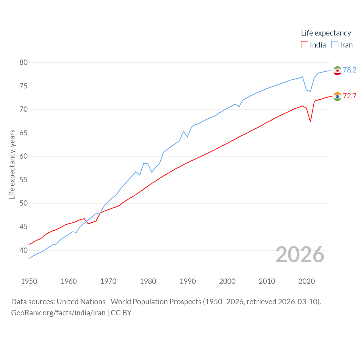 - United Nations | World Population Prospects (1950–2026, retrieved 2026-03-10)