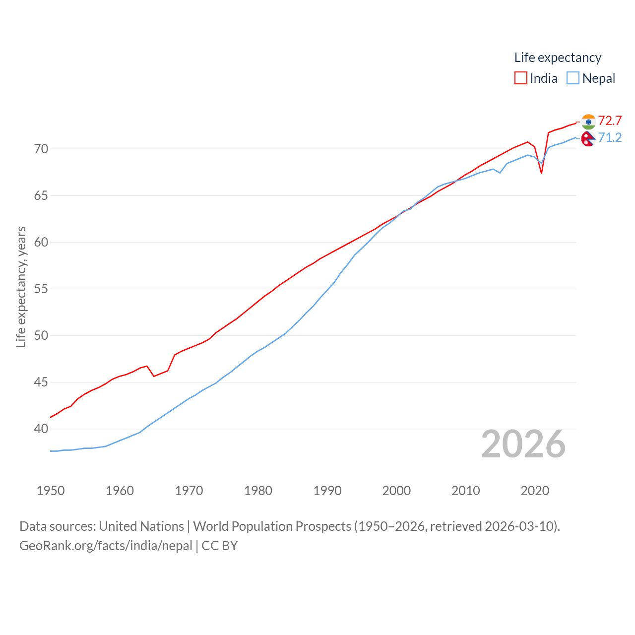 - United Nations | World Population Prospects (1950–2026, retrieved 2026-03-10)