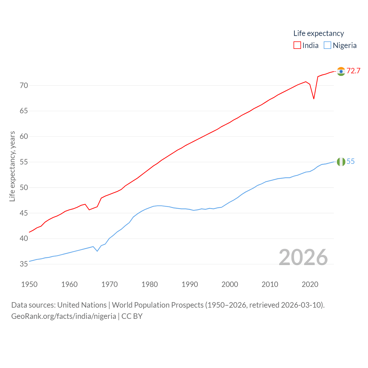 - United Nations | World Population Prospects (1950–2026, retrieved 2026-03-10)