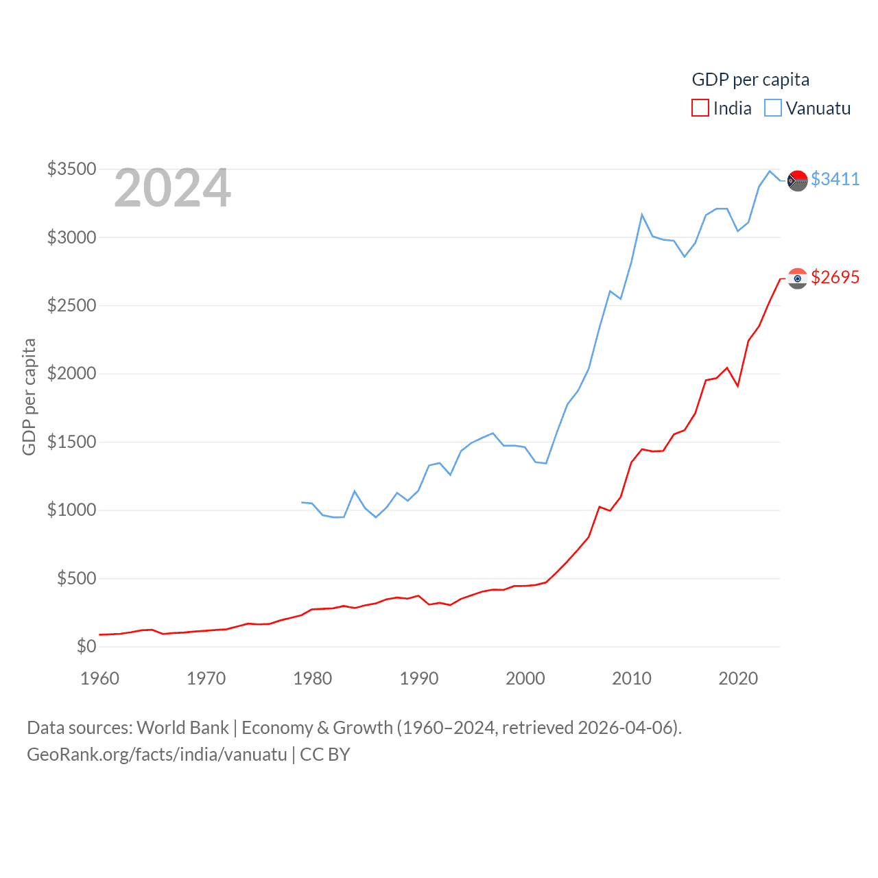 India and Vanuatu economies compared