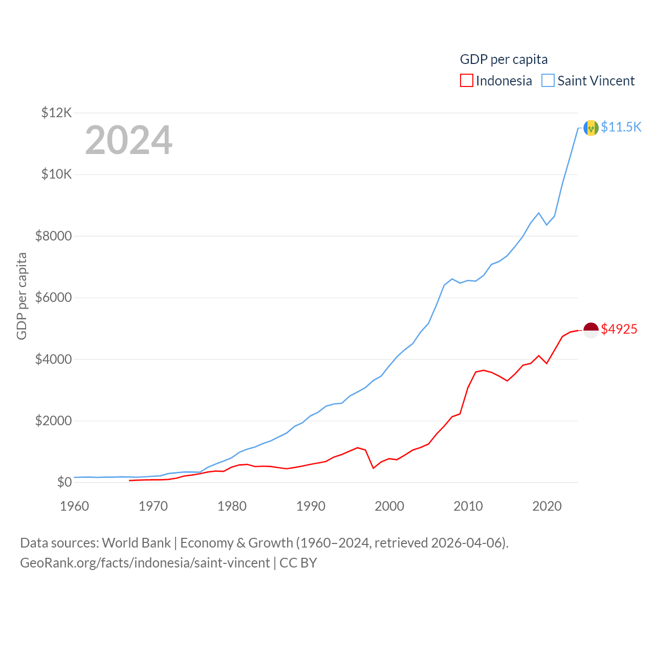 Indonesia and Saint Vincent economies compared