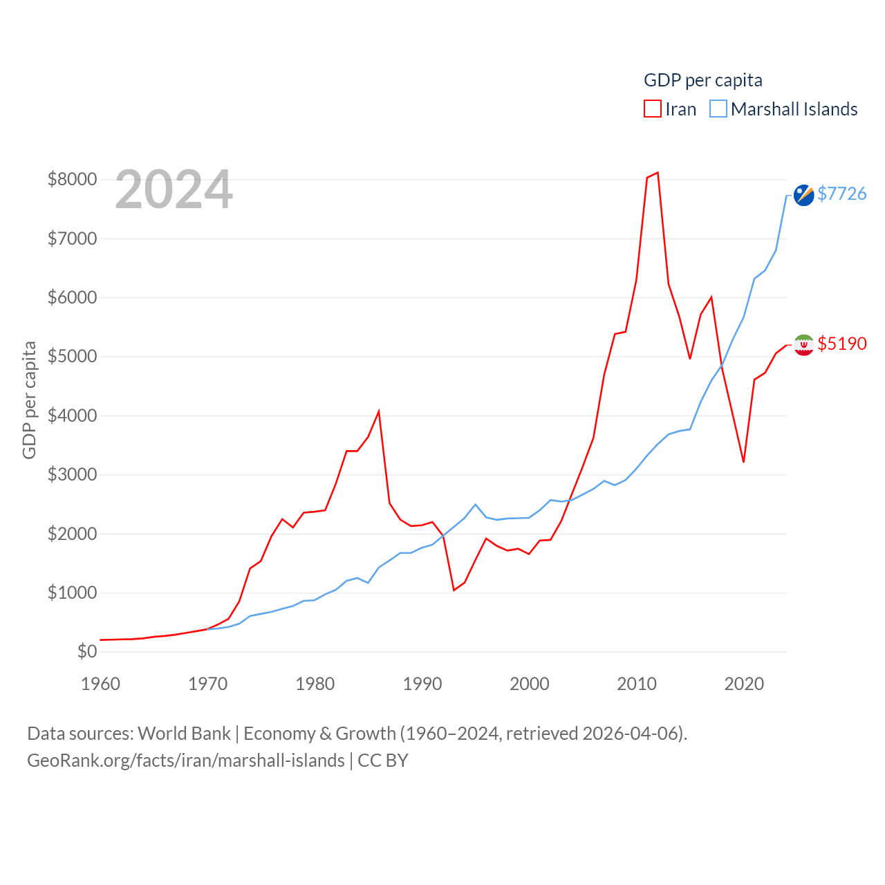 Iran and Marshall Islands economies compared