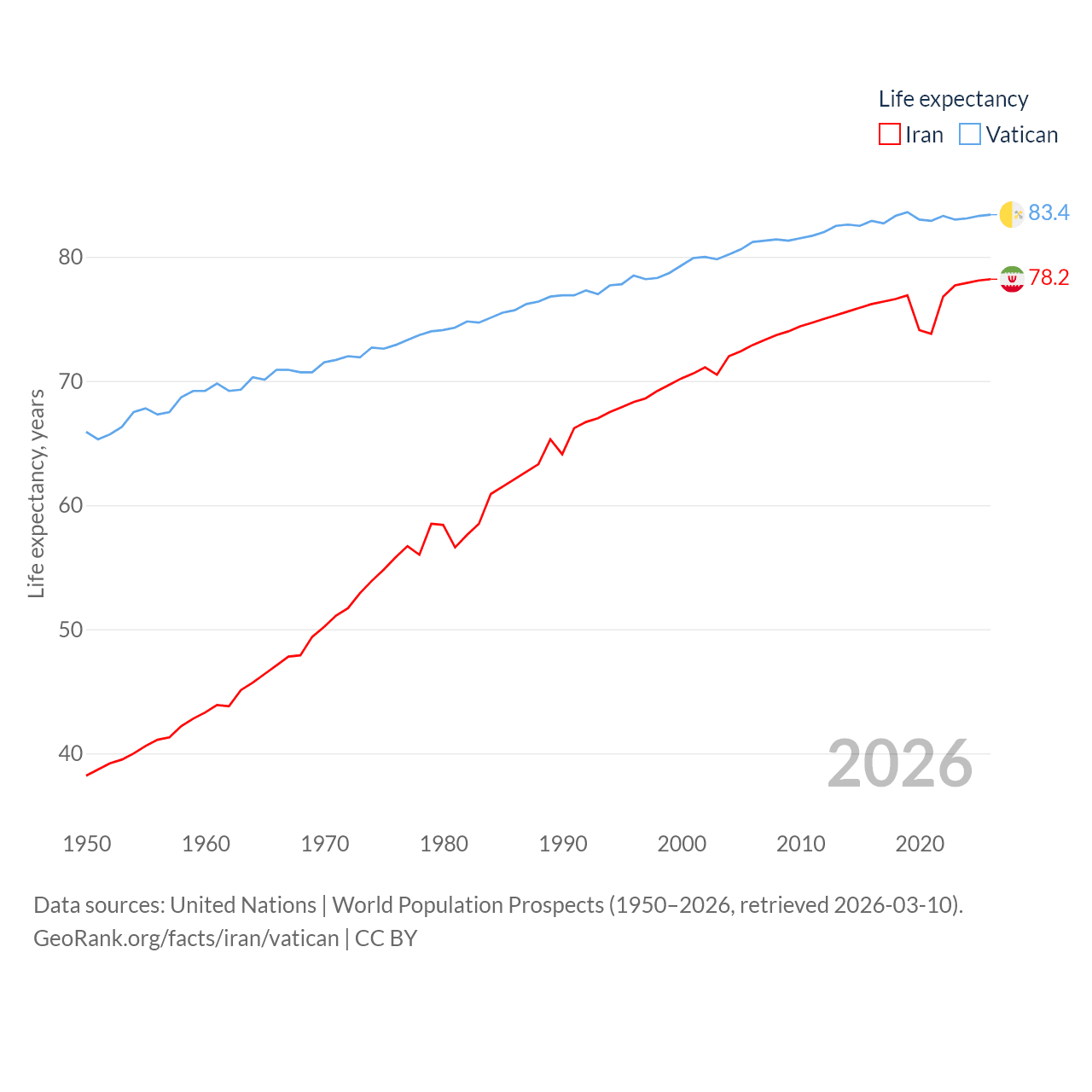 Iran vs. Vatican life expectancy calculator