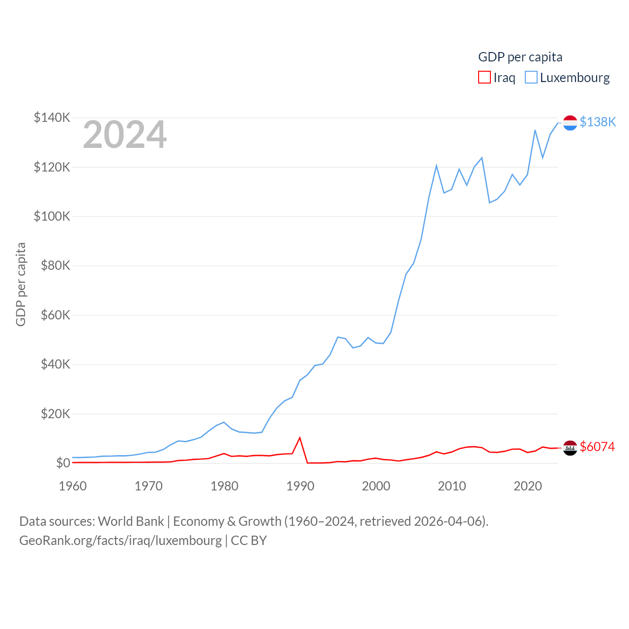 Iraq and Luxembourg economies compared