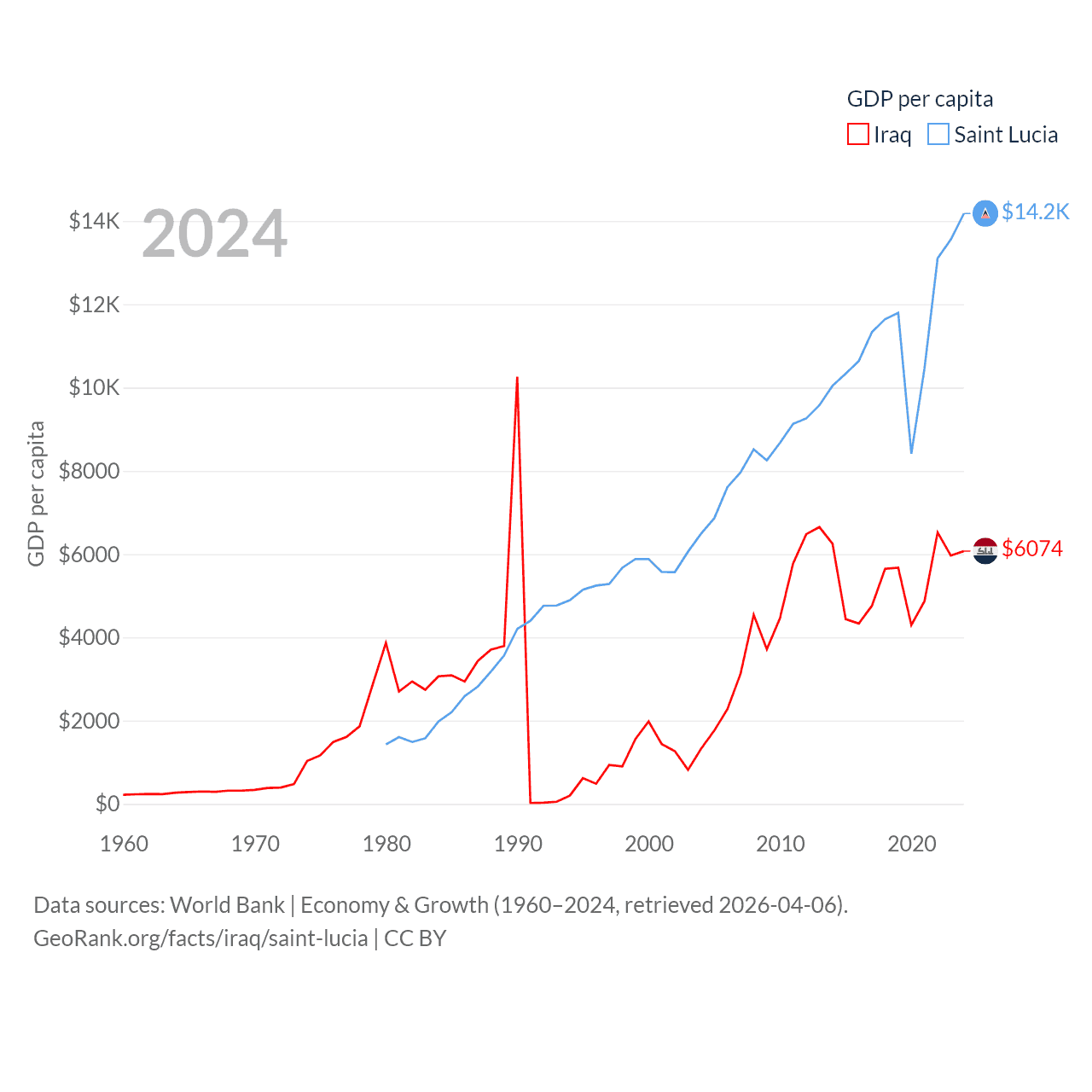 Iraq and Saint Lucia economies compared