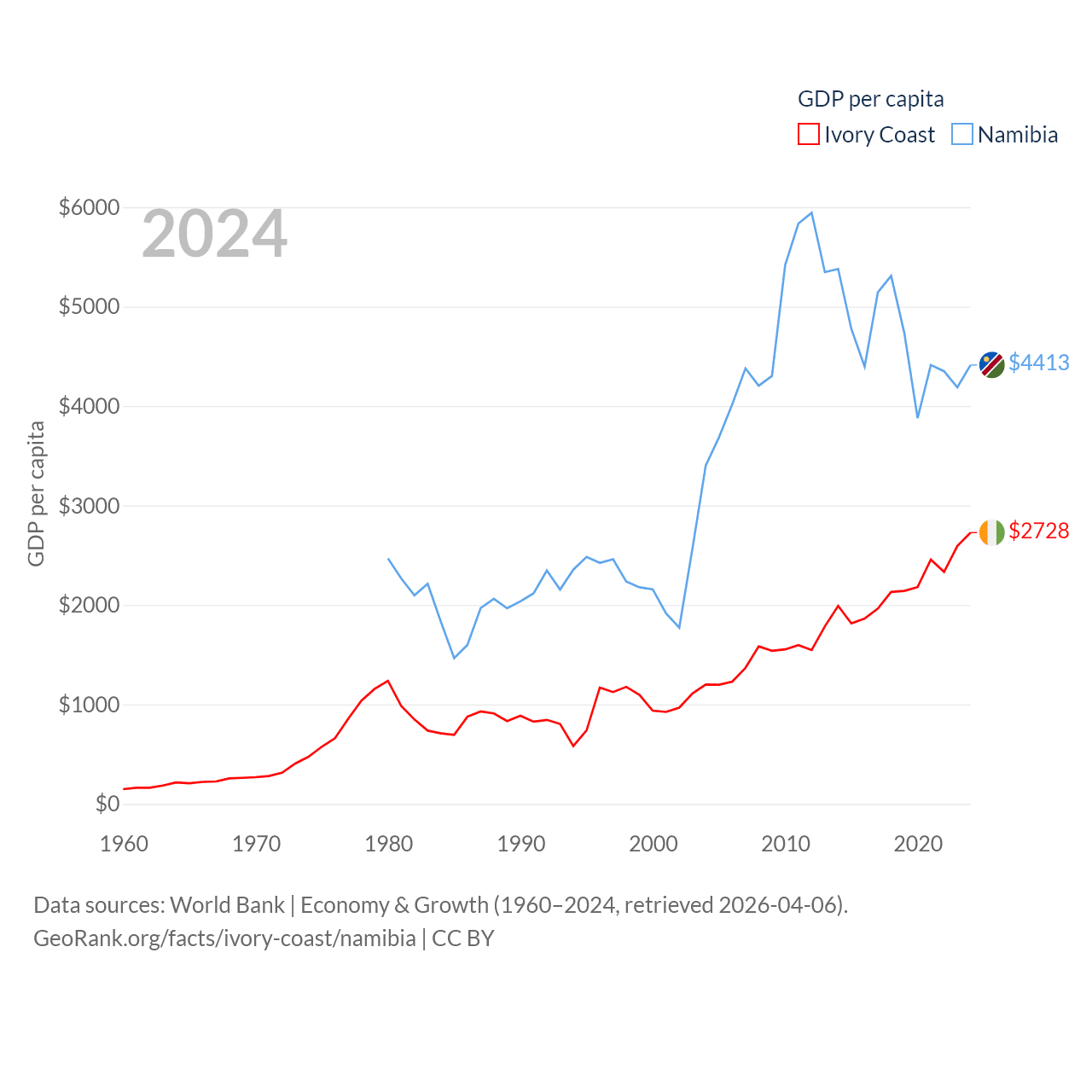 Ivory Coast and Namibia economies compared