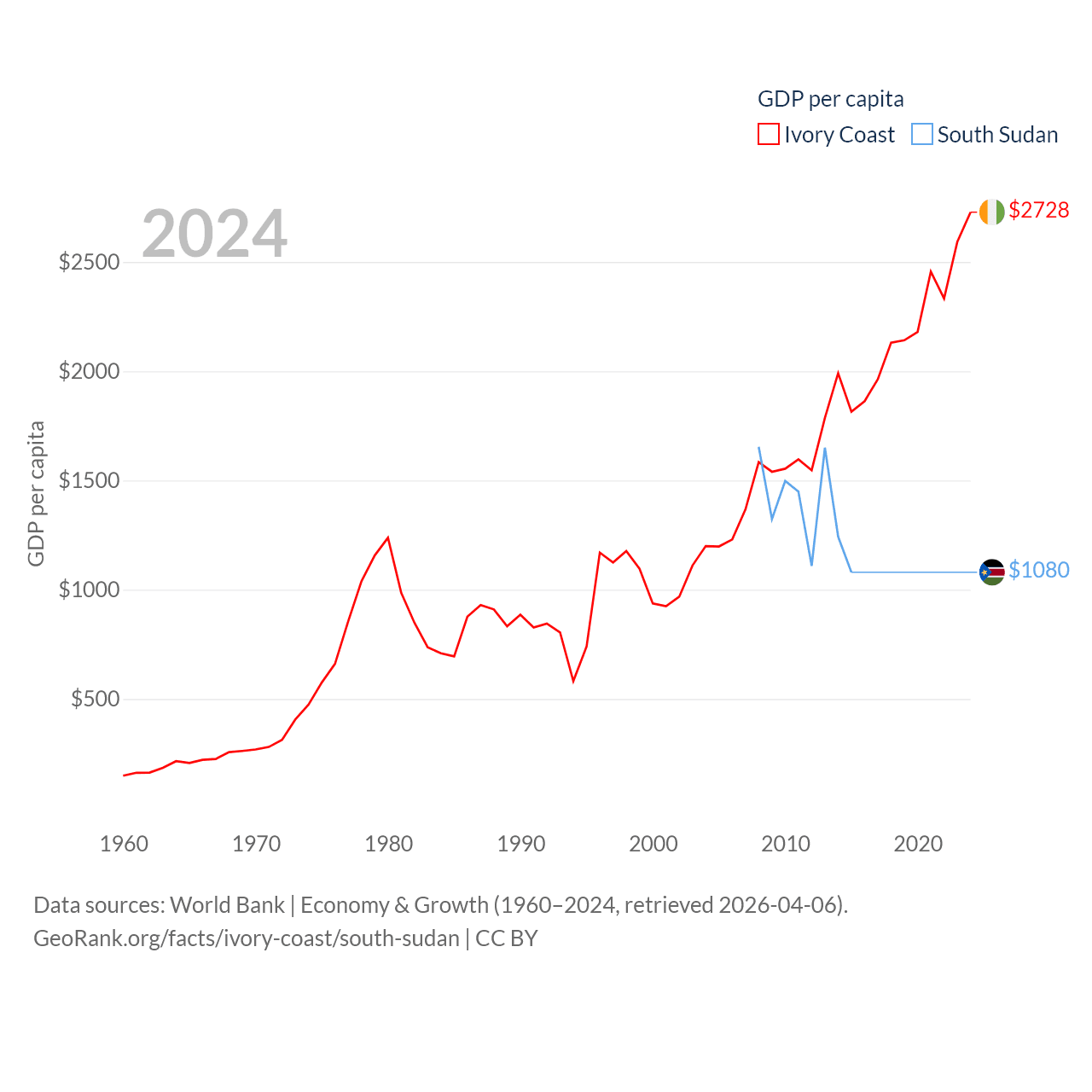 Ivory Coast and South Sudan economies compared