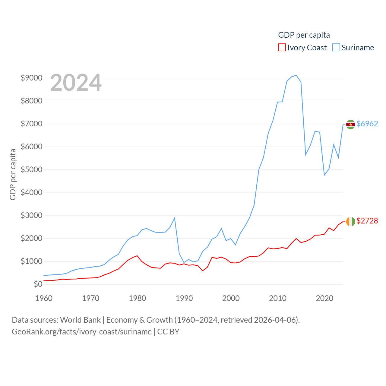 Ivory Coast and Suriname economies compared