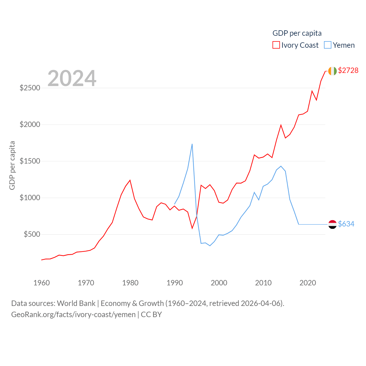Ivory Coast and Yemen economies compared