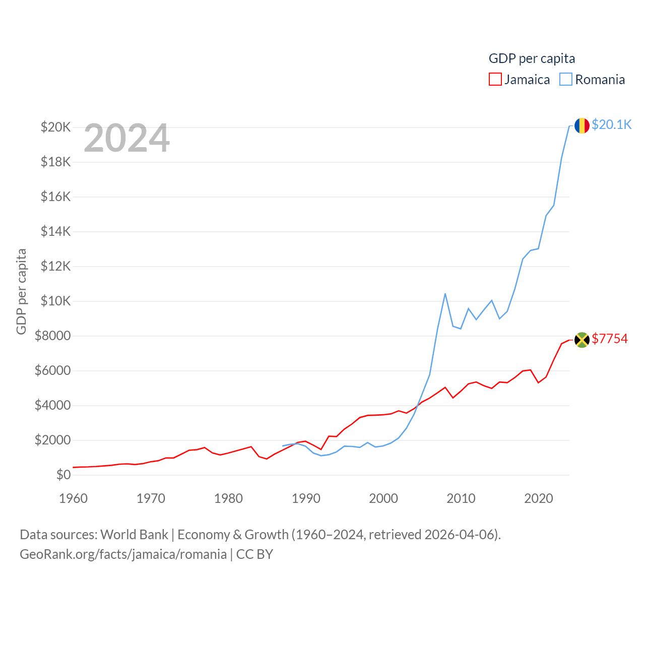 Jamaica and Romania economies compared