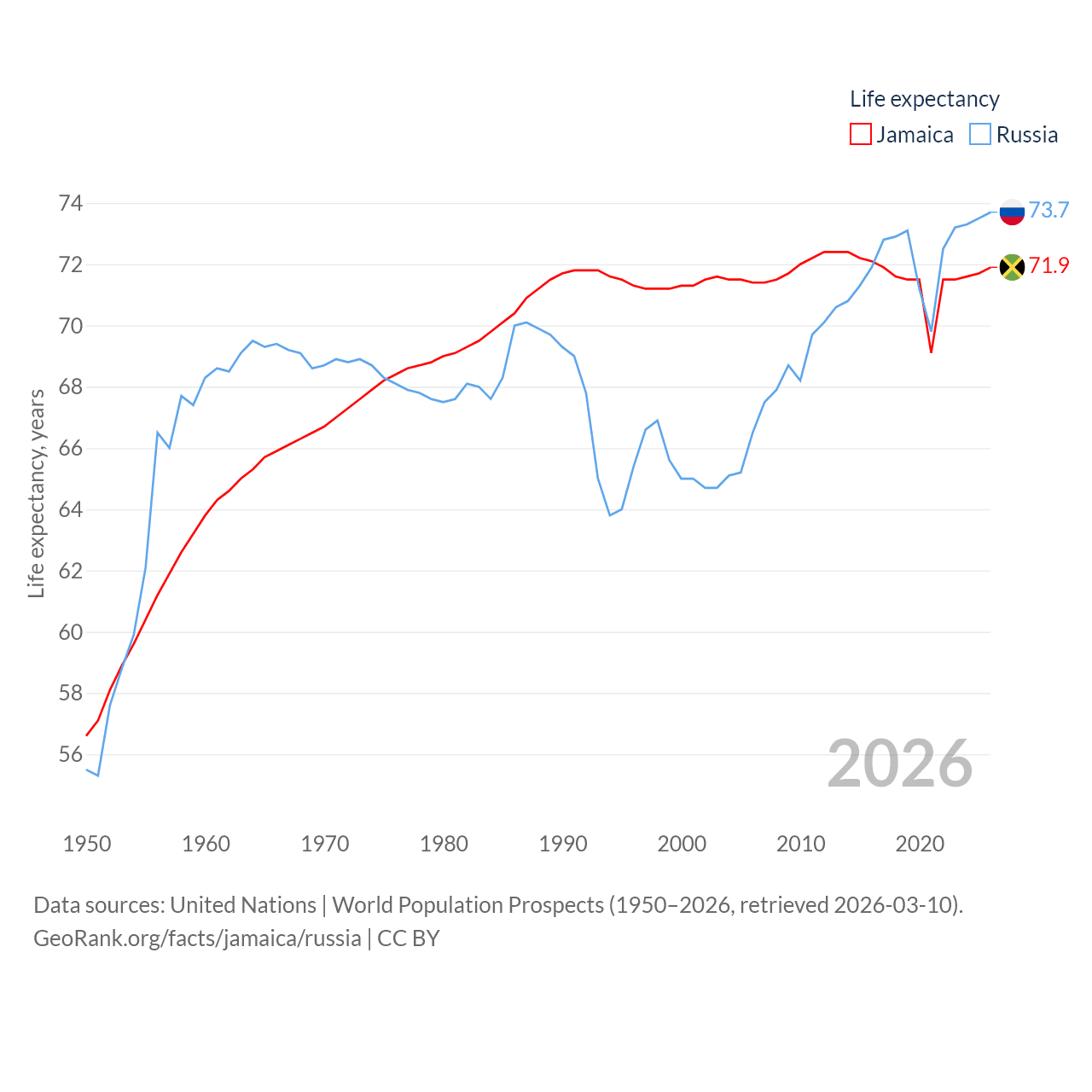 Jamaica and Russia economies compared