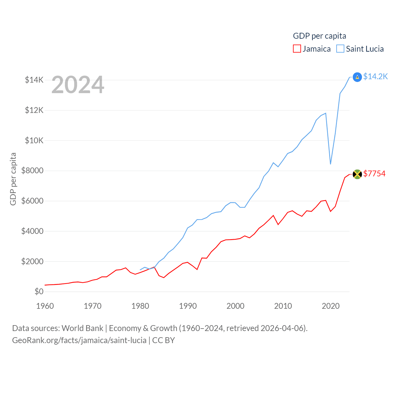 Jamaica and Saint Lucia economies compared