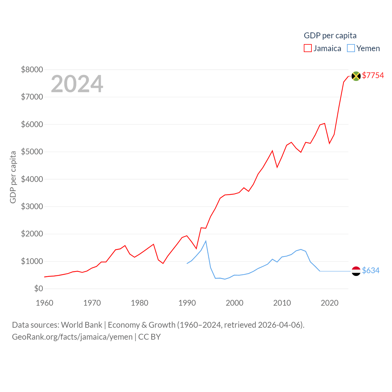Jamaica and Yemen economies compared