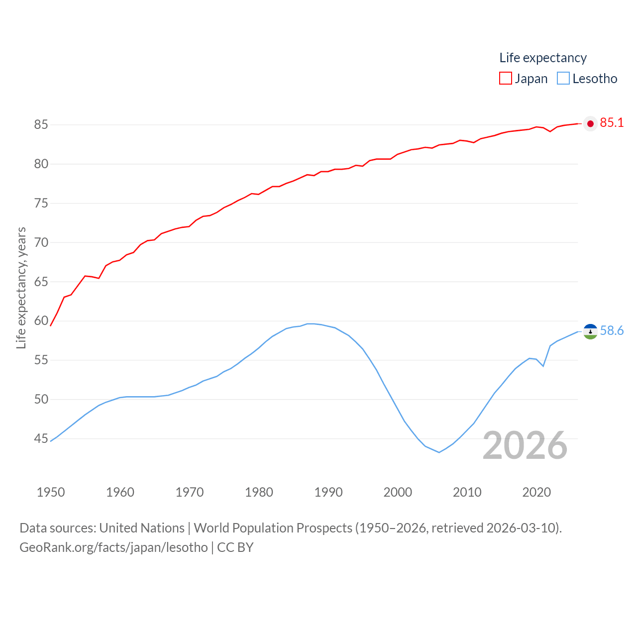 Japan and Lesotho: Comparison Charts