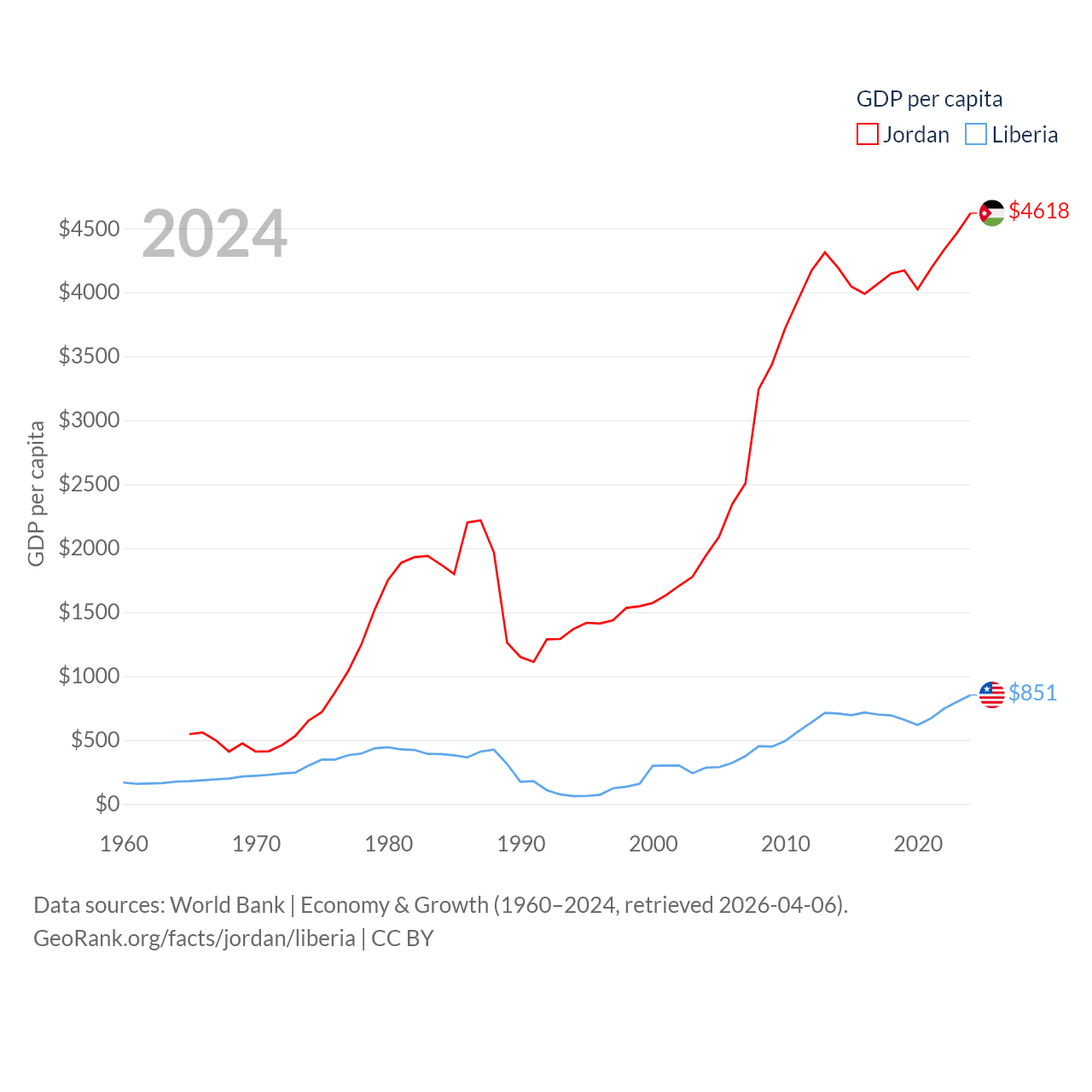 Jordan and Liberia economies compared