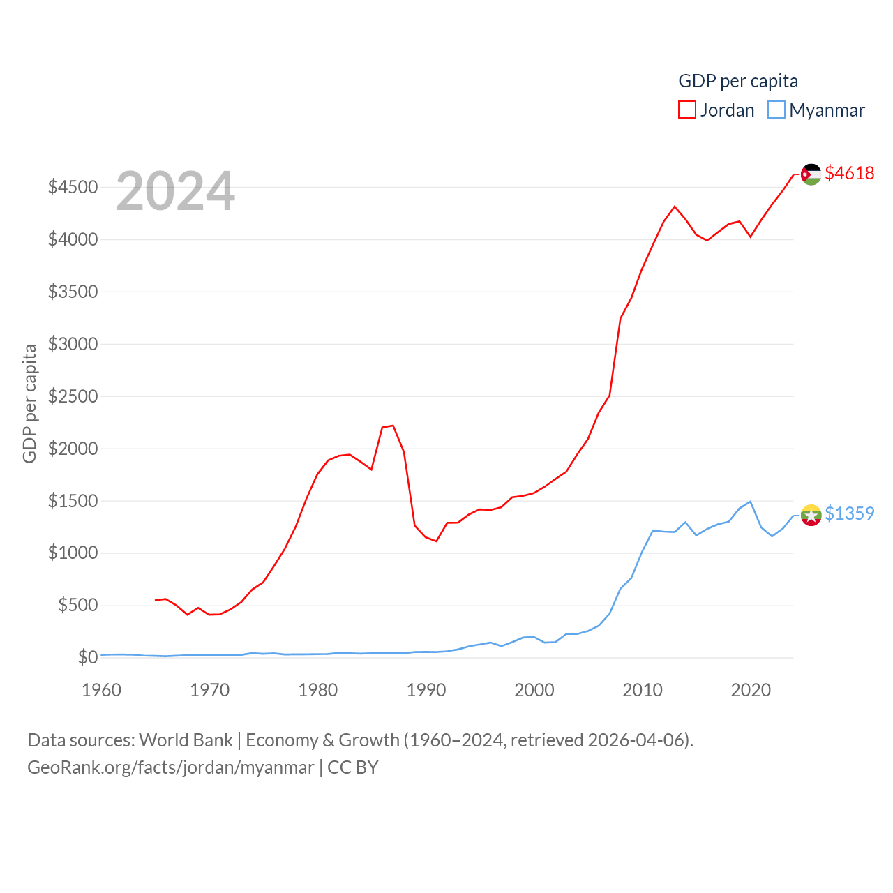 Jordan and Myanmar economies compared