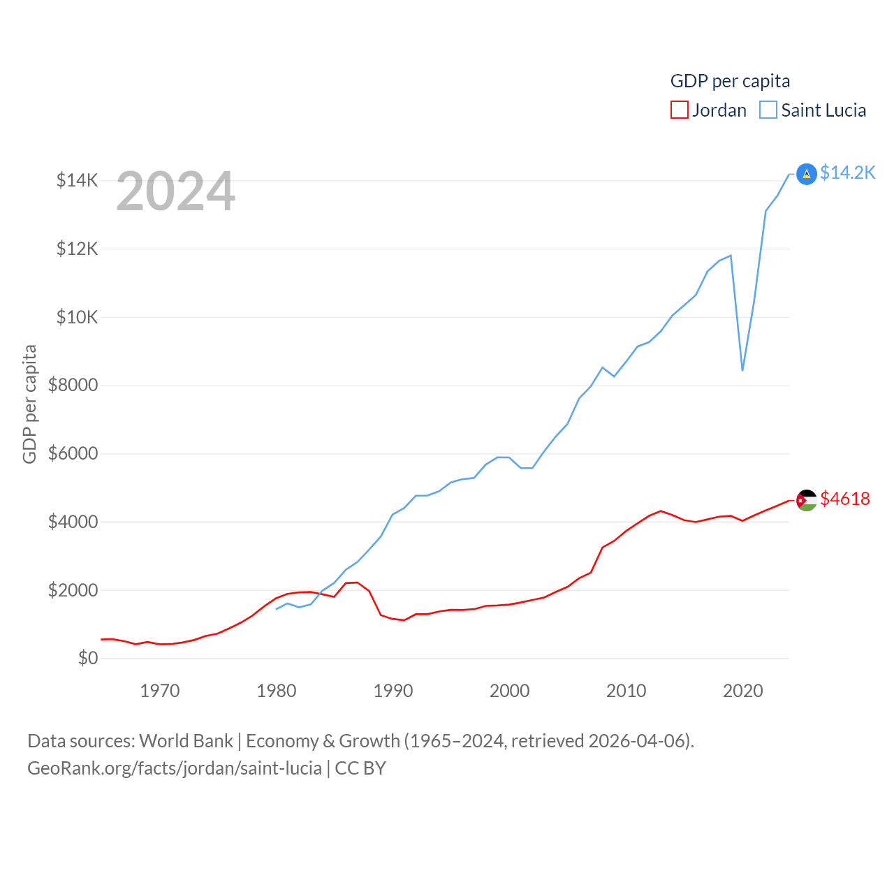 Jordan and Saint Lucia economies compared