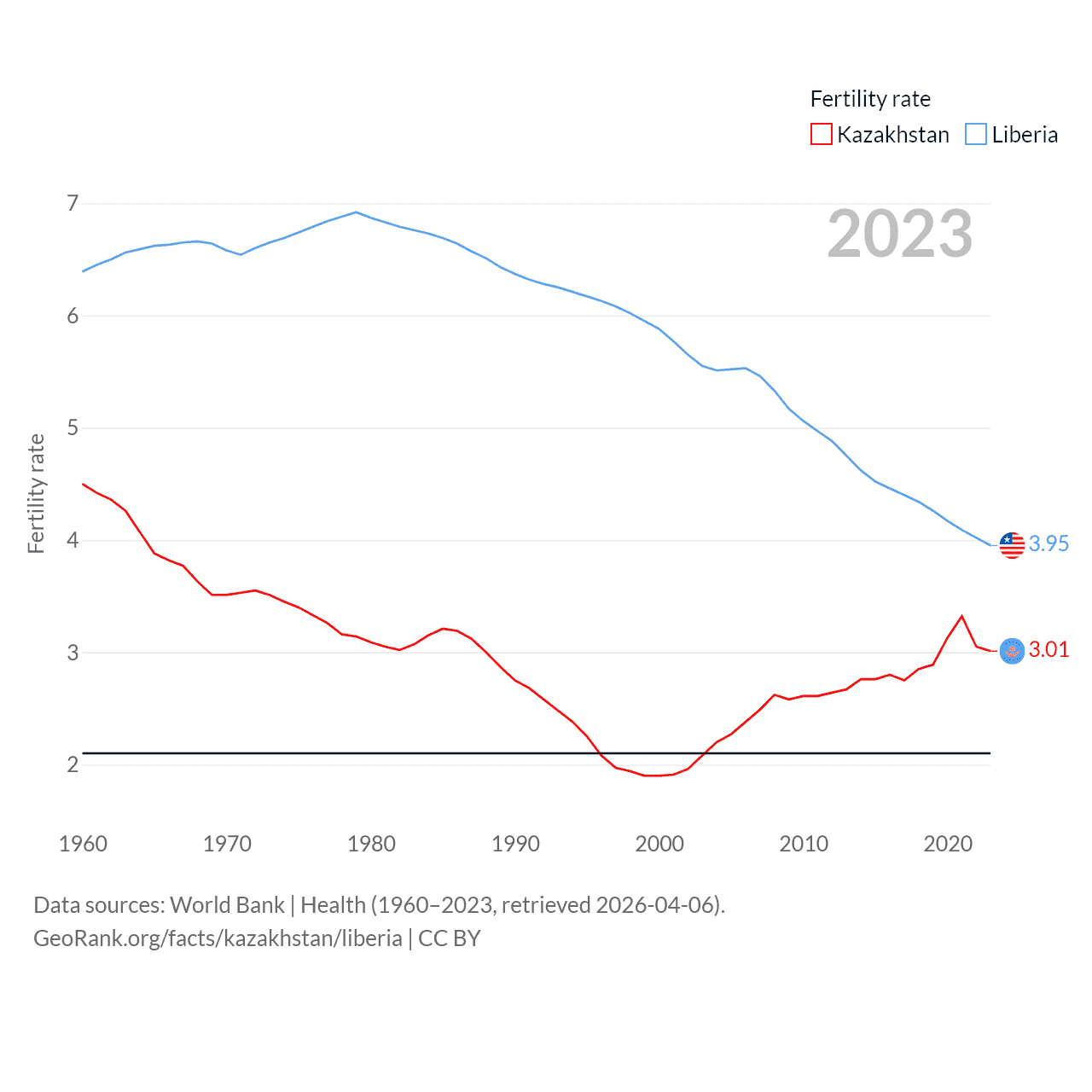 - World Bank | Health (1960–2025, retrieved 2026-04-06)