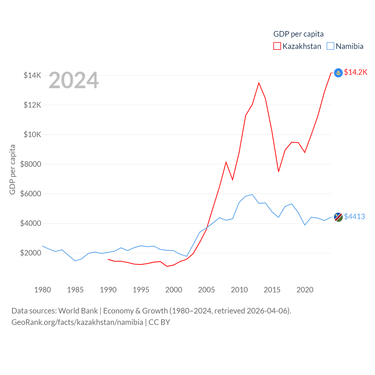 Data sources: World Bank | Economy & Growth (1980–2024, retrieved 2026-04-06).