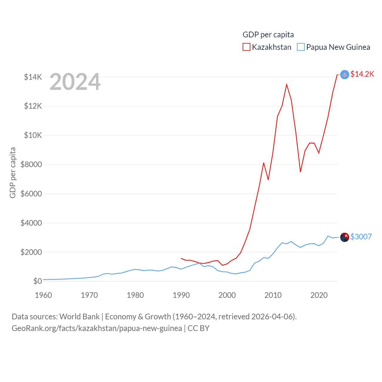 Kazakhstan and Papua New Guinea economies compared