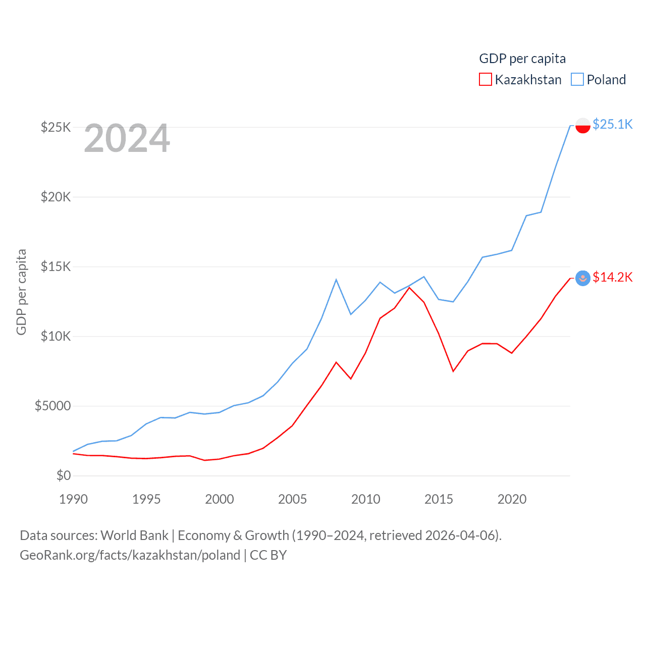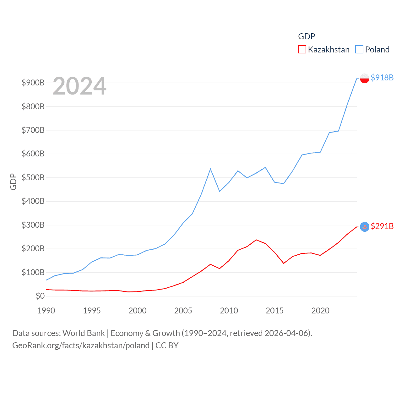 Data sources: World Bank | Economy & Growth (1990–2024, retrieved 2026-04-06).