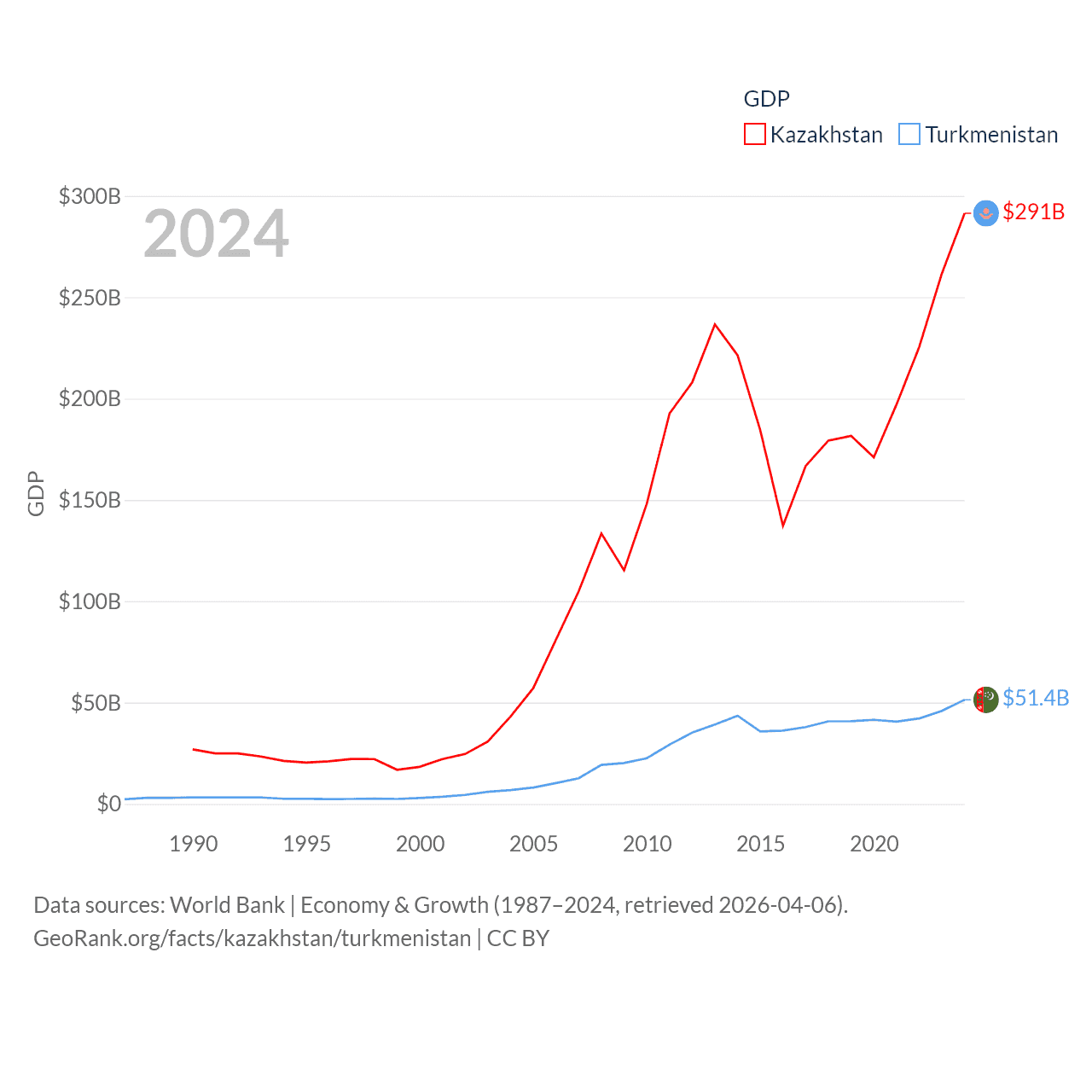 Data sources: World Bank | Economy & Growth (1987–2024, retrieved 2026-04-06).