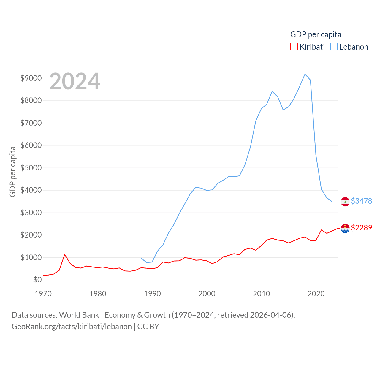 Kiribati and Lebanon economies compared