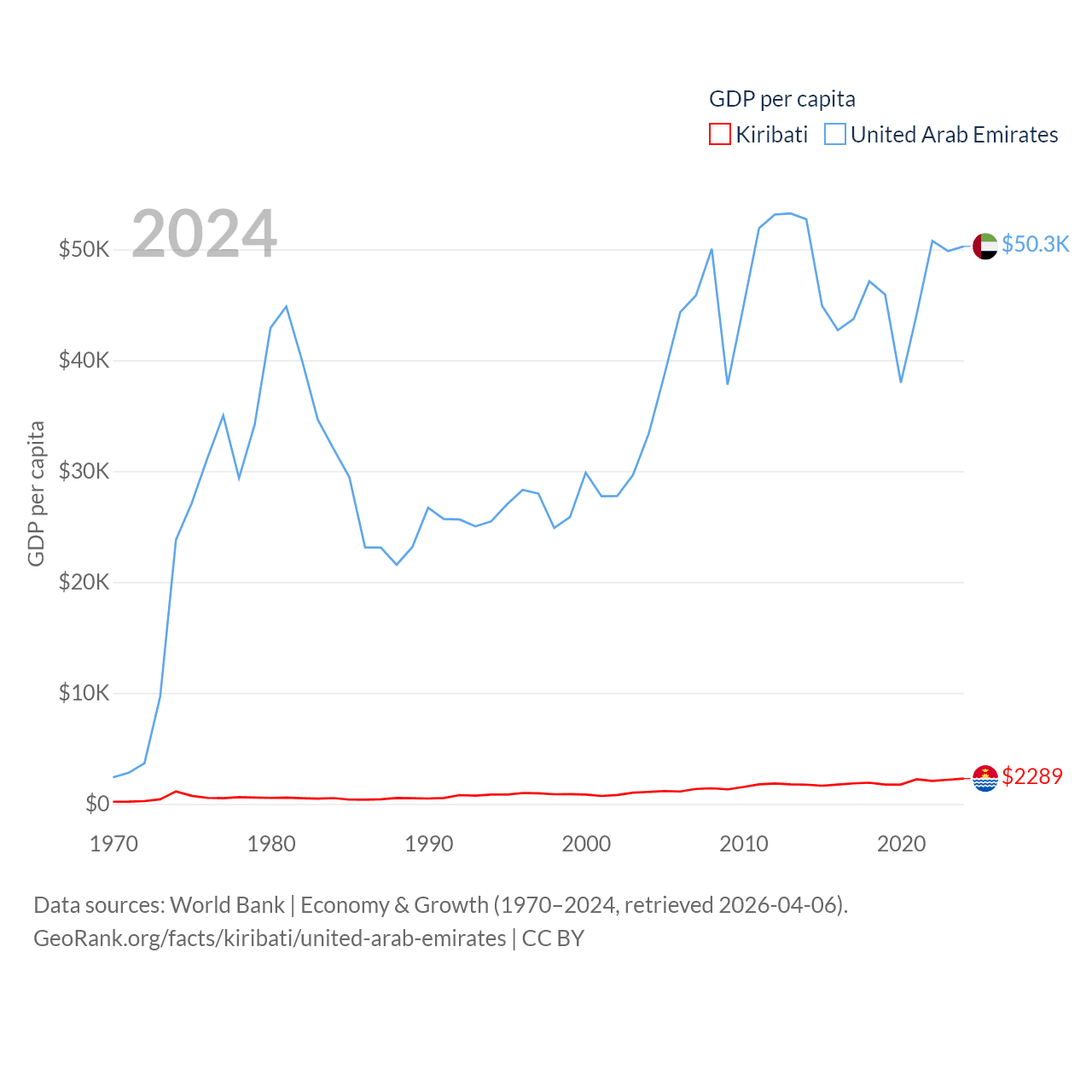 Kiribati and United Arab Emirates economies compared