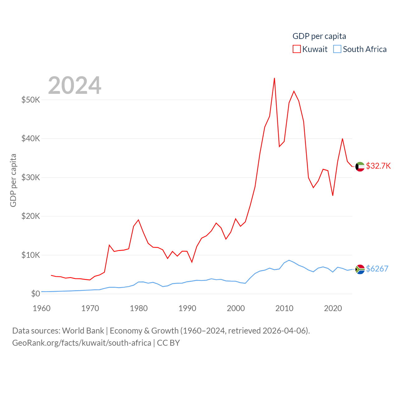 Kuwait and South Africa economies compared