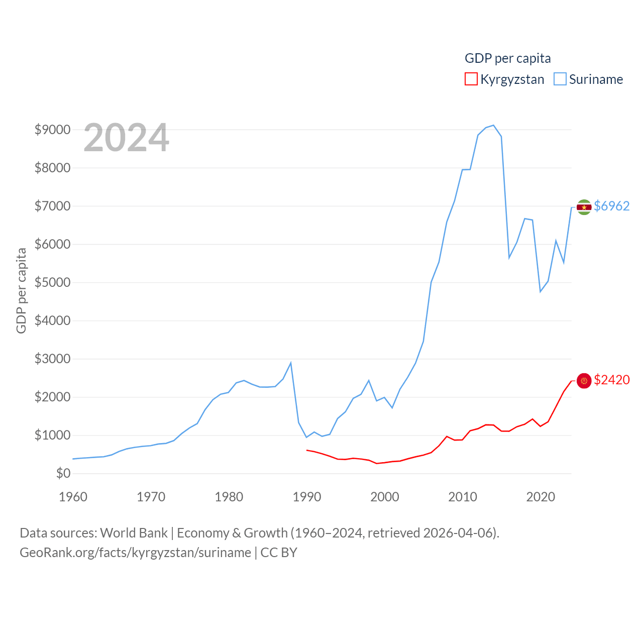 Kyrgyzstan and Suriname economies compared
