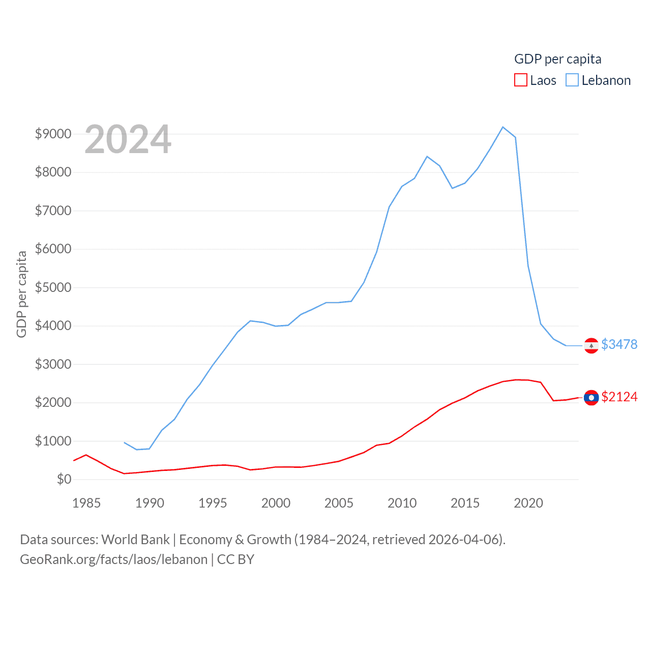 Data sources: World Bank | Economy & Growth (1984–2024, retrieved 2026-04-06).