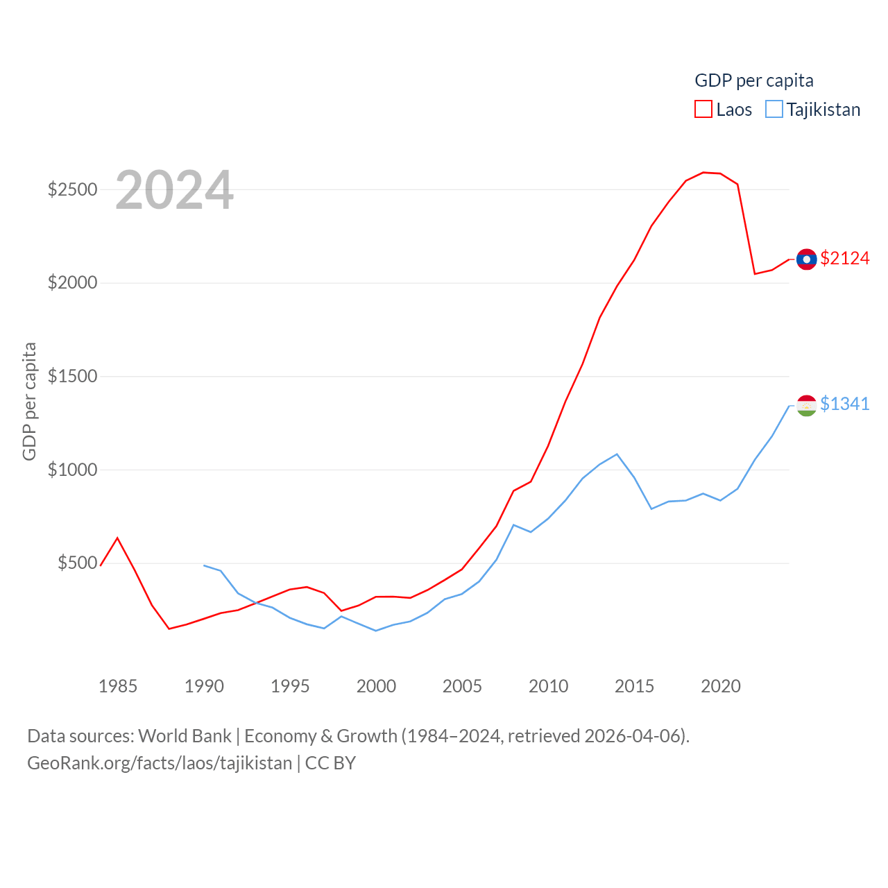 Data sources: World Bank | Economy & Growth (1984–2024, retrieved 2026-04-06).