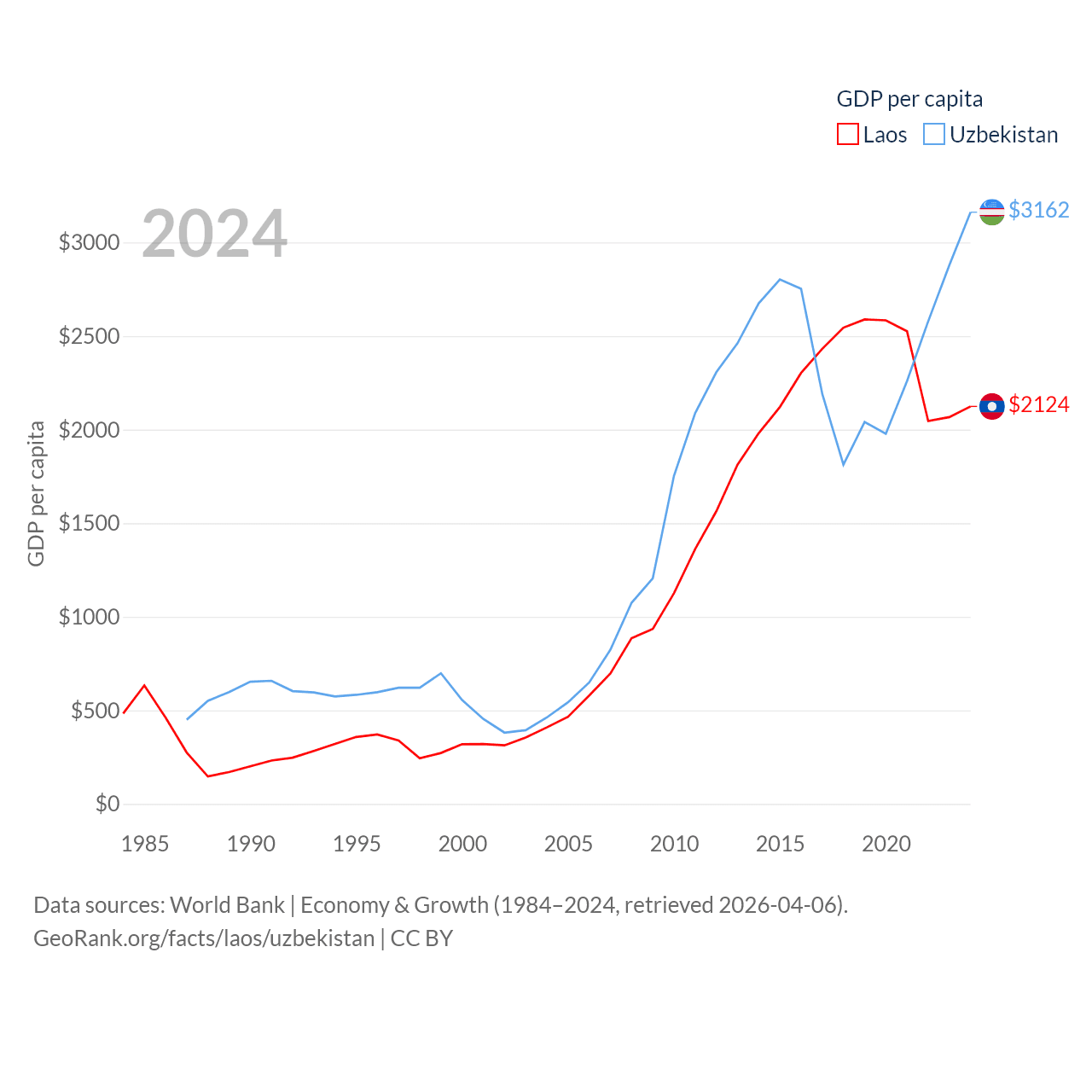 Data sources: World Bank | Economy & Growth (1984–2024, retrieved 2026-04-06).