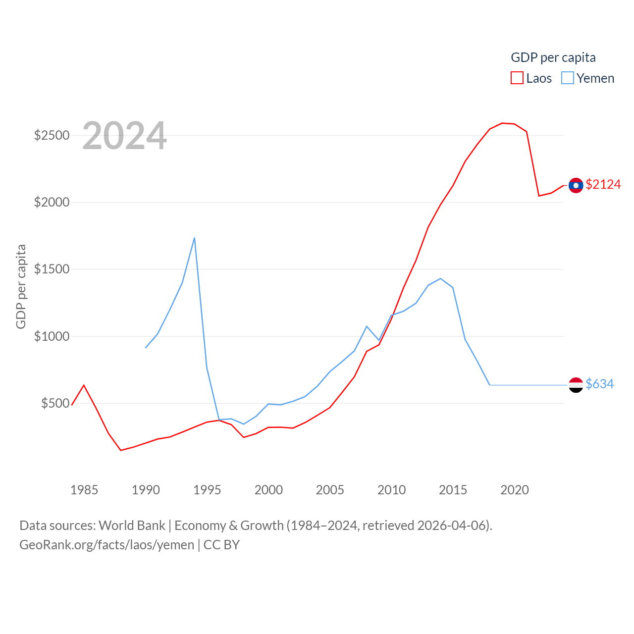 Data sources: World Bank | Economy & Growth (1984–2024, retrieved 2026-04-06).