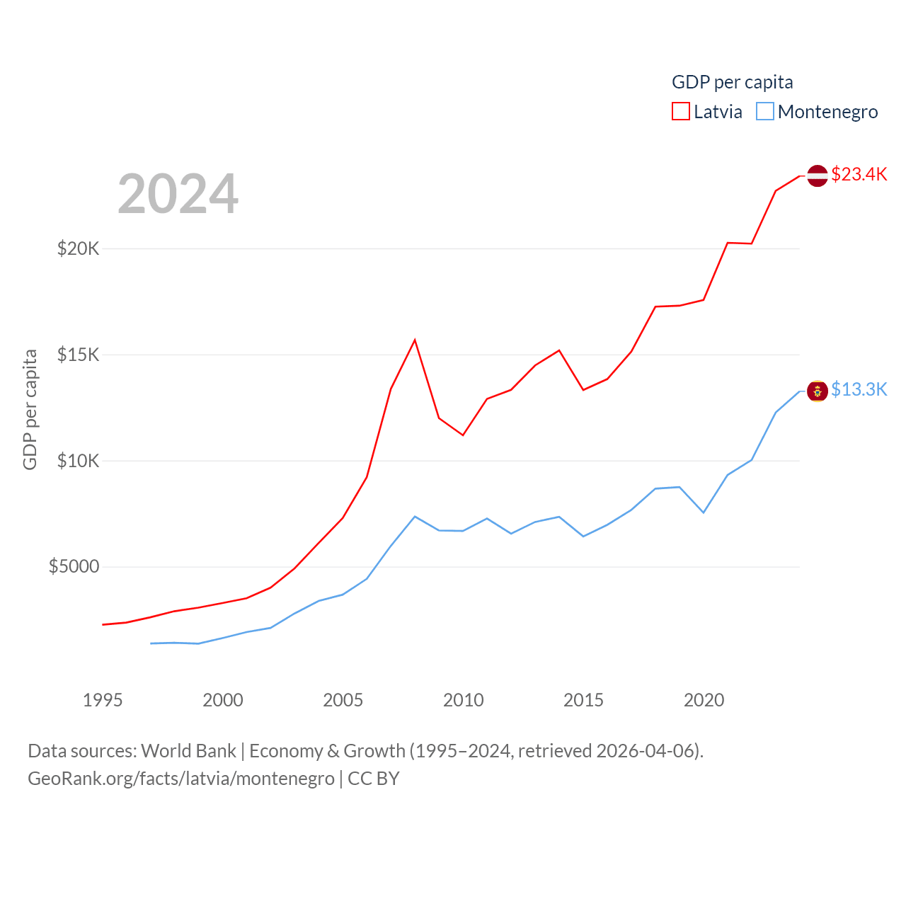 Data sources: World Bank | Economy & Growth (1995–2024, retrieved 2026-04-06).