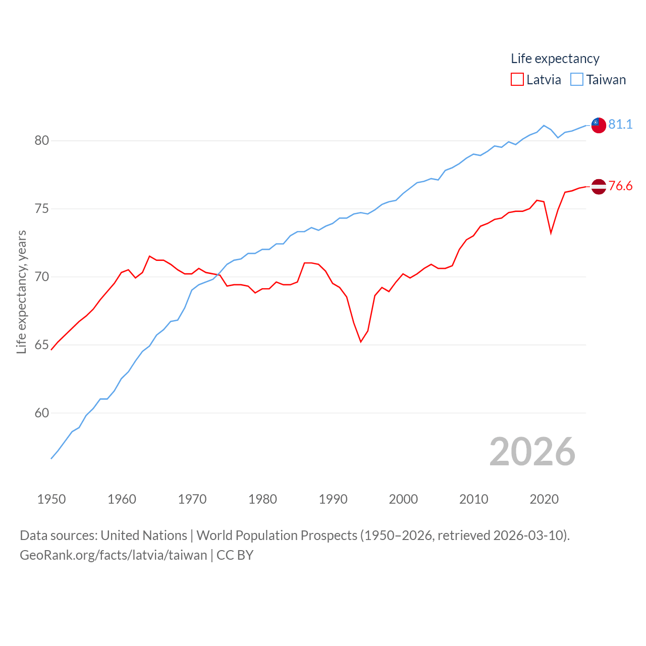 - United Nations | World Population Prospects (1950–2026, retrieved 2026-03-10)
