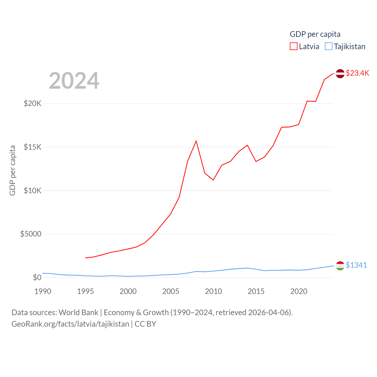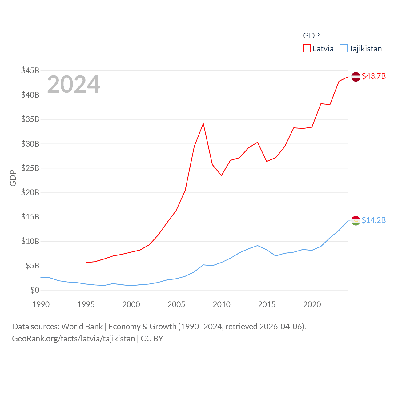 Data sources: World Bank | Economy & Growth (1990–2024, retrieved 2026-04-06).
