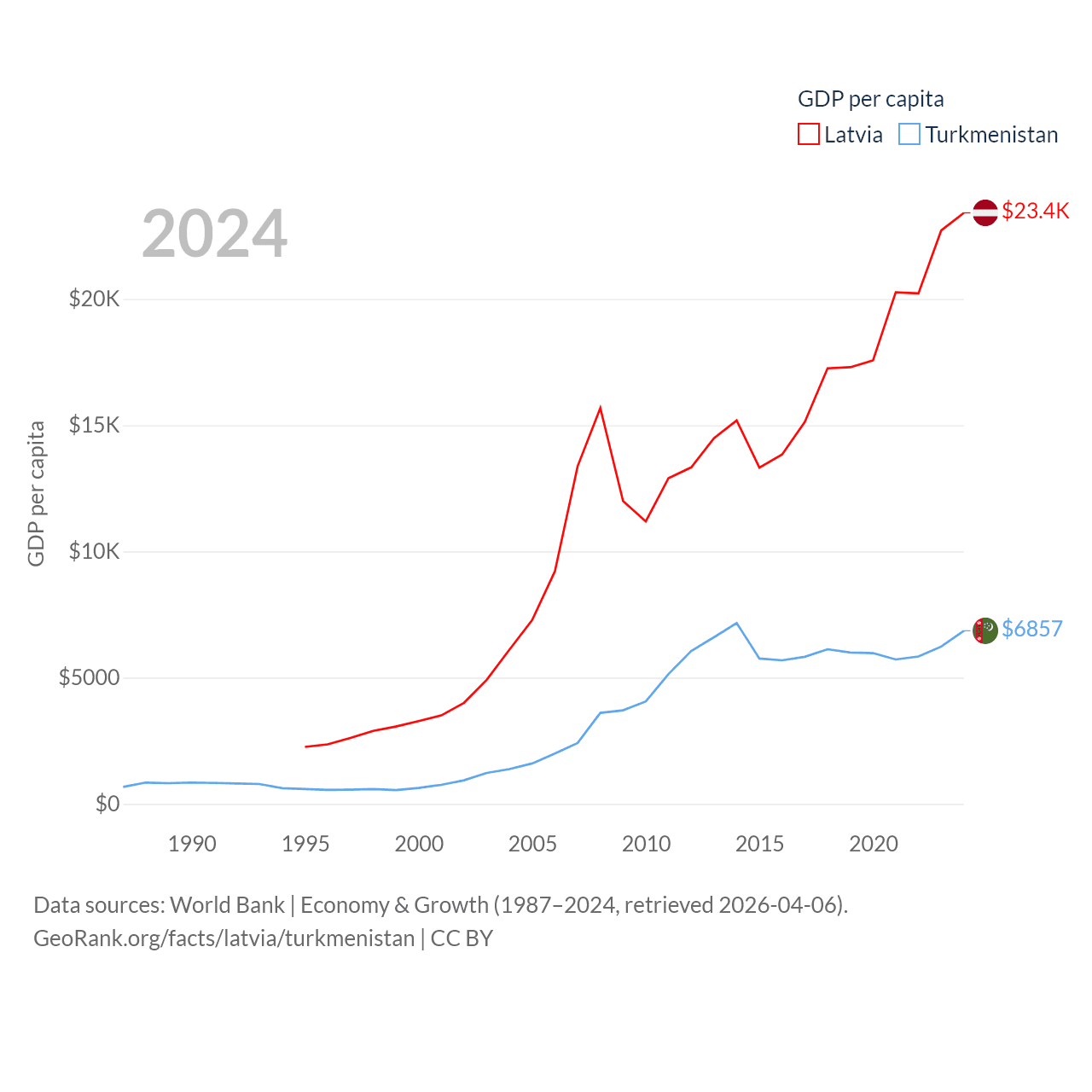 Data sources: World Bank | Economy & Growth (1987–2024, retrieved 2026-04-06).