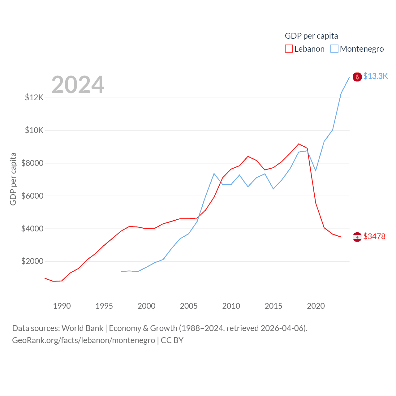 Data sources: World Bank | Economy & Growth (1988–2024, retrieved 2026-04-06).