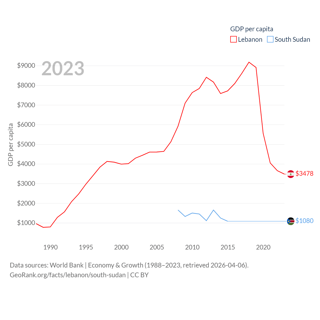 Data sources: World Bank | Economy & Growth (1988–2023, retrieved 2026-04-06).