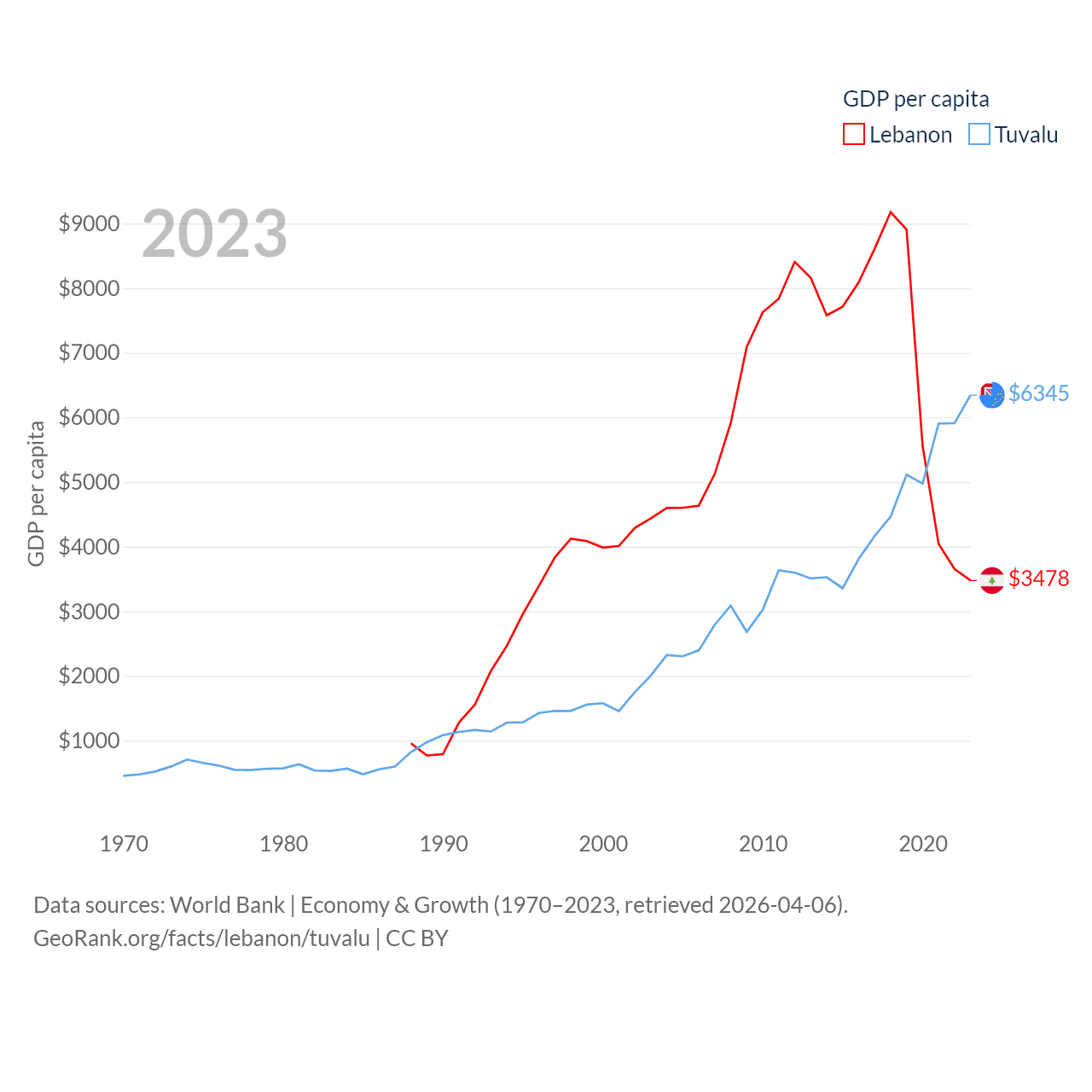 Lebanon and Tuvalu economies compared