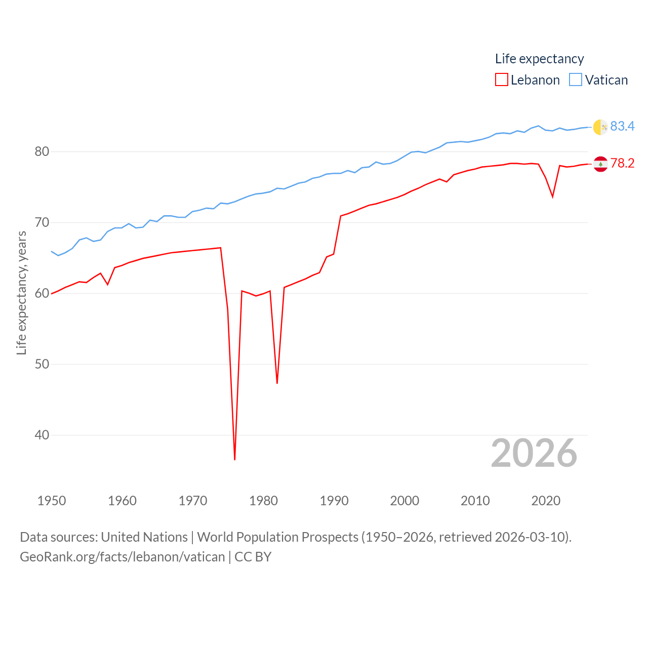 Lebanon vs. Vatican life expectancy calculator