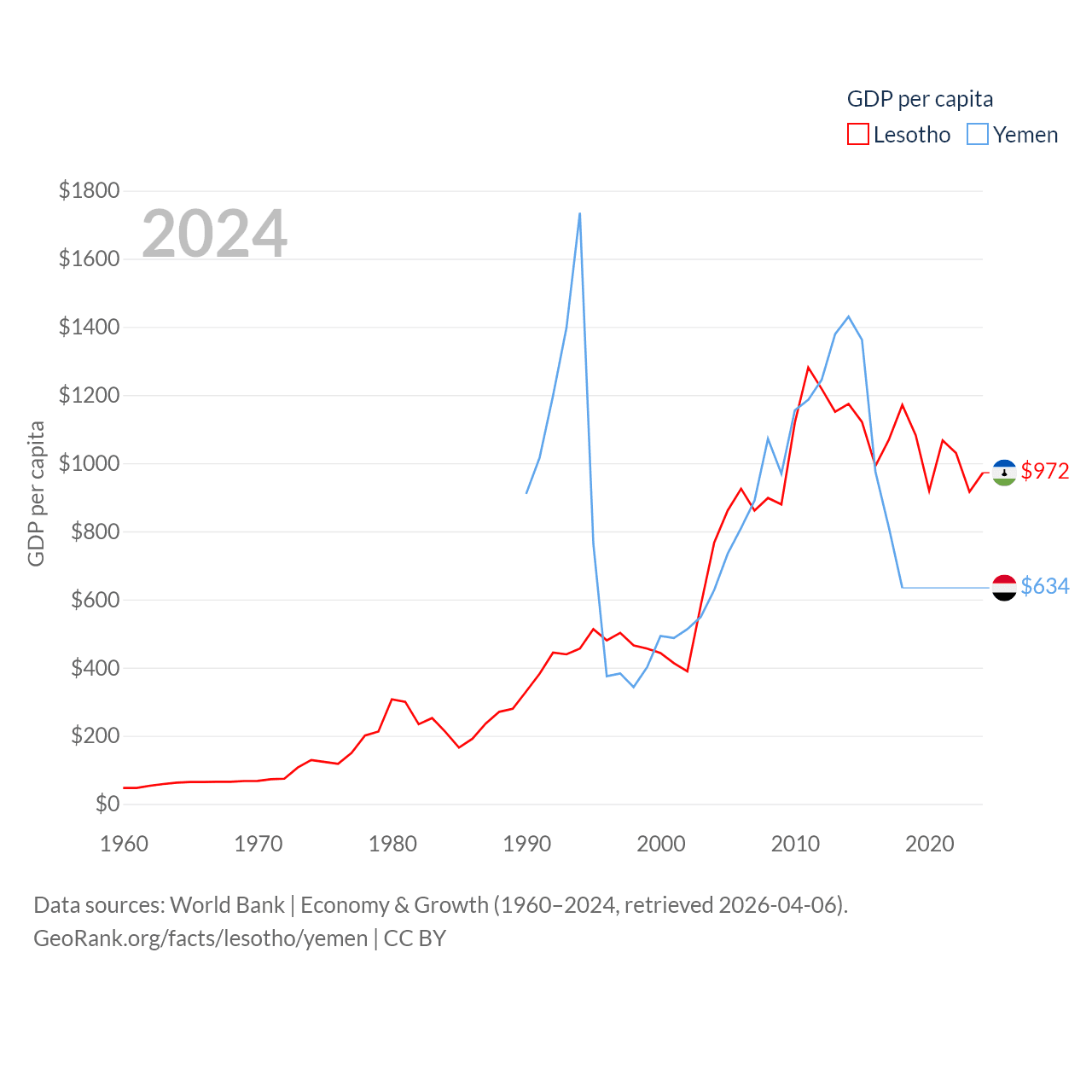 Lesotho and Yemen economies compared